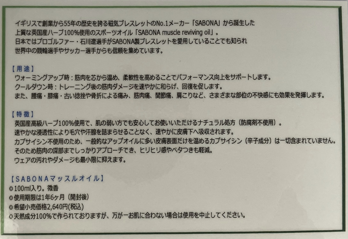 【SABONAマッスルオイル】